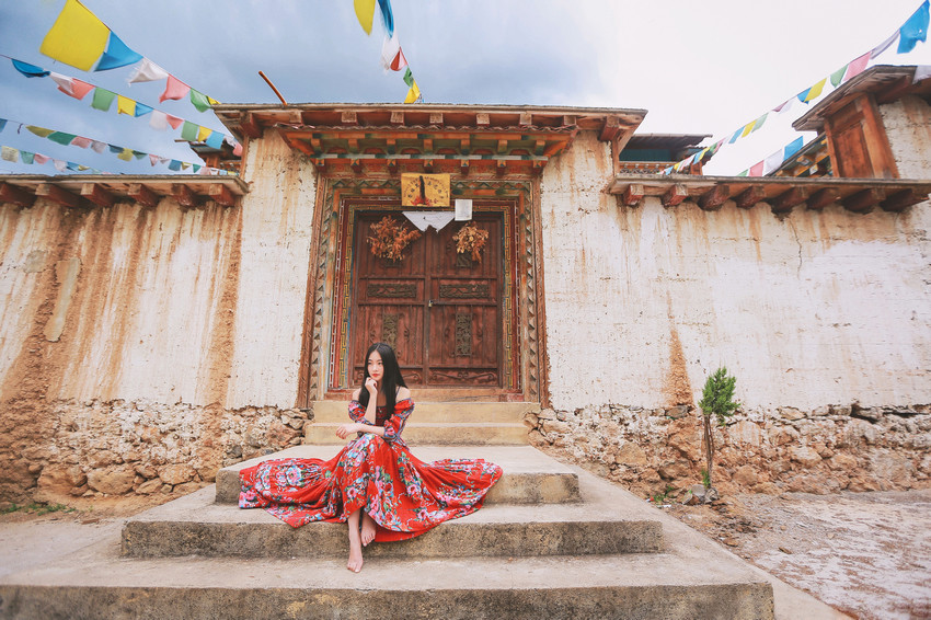 红裙女子白皙肌肤迷人写真